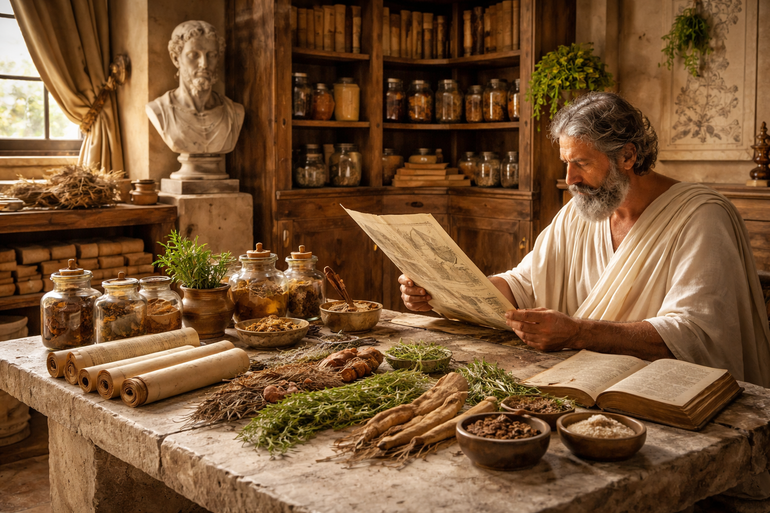 As herbal knowledge spread across the ancient Mediterranean, Greek and Roman thinkers helped organize it into early medical reference works. This was a major turning point because it moved plant knowledge from local tradition toward broader medical study.